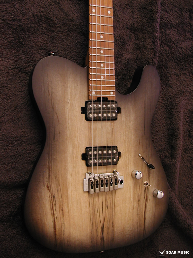 JTシリーズ初登場となる「TACTICS24」モデルでは、ボディトップにエキゾチックウッドとして知られるスポルテッドメイプルを採用。「スポルテッド(Spalted)」とは、自然の中で細菌などによって腐朽(ふきゅう)が進んだ結果、特徴的な模様を持つ杢目が生まれた木材に使用される言葉です。工芸品の装飾に使われることも多く、王道のフレイムやキルト杢とは一味違った雰囲気を感じさせます。