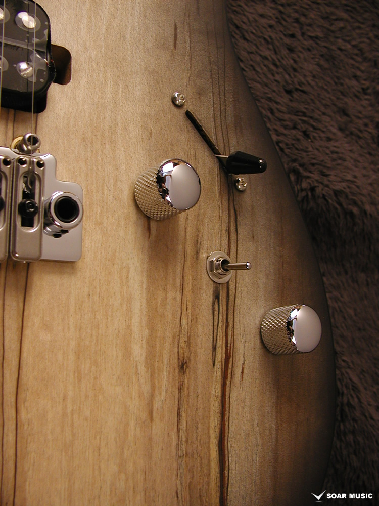 ミニスイッチを切り替えることにより、疑似的にシングルコイル・トーンを生み出すコイルタップ機能に加え、滑らかなアーミングを可能にするWilkinson®社の2スタッドトレモロを標準搭載。