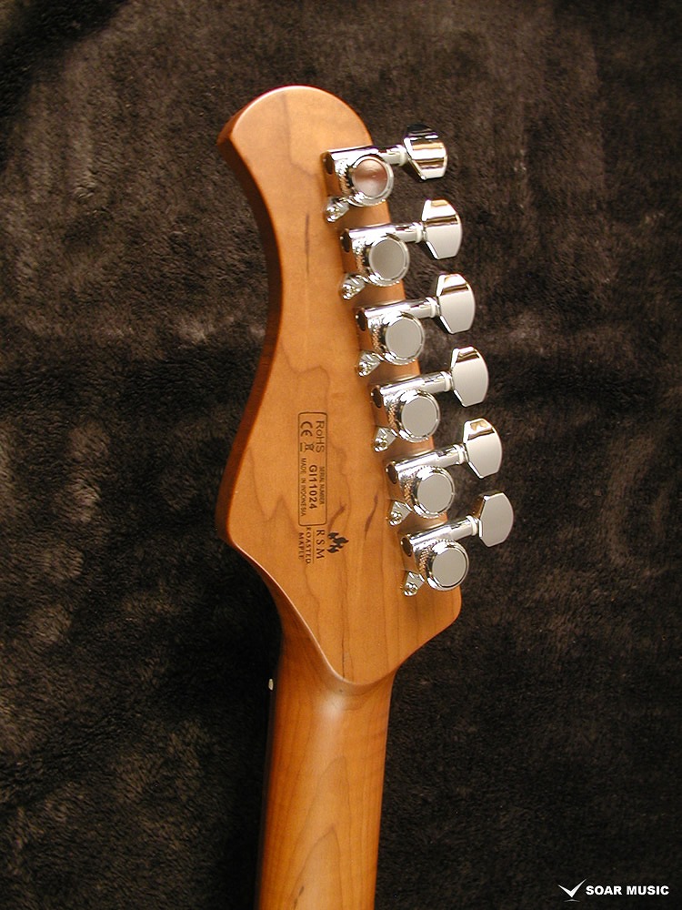 ローステッドメイプルとはメイプルを高温で加熱処理して材の中の水分や油分を揮発させることにより木材を経年変化した状態に人工的に近づけた材のことです。経年劣化が進んだ材は歪みやねじれが生じにくくなります。 ネックに使用されるとその効果は安定性だけでなくサウンドにも及び、豊かな生鳴りと経年変化したビンテージのようなこなれたトーンを生み出します。 一般的に高級機種などで用いられる材ですが、手に取りやすい価格帯に落とし込むことに成功しました。