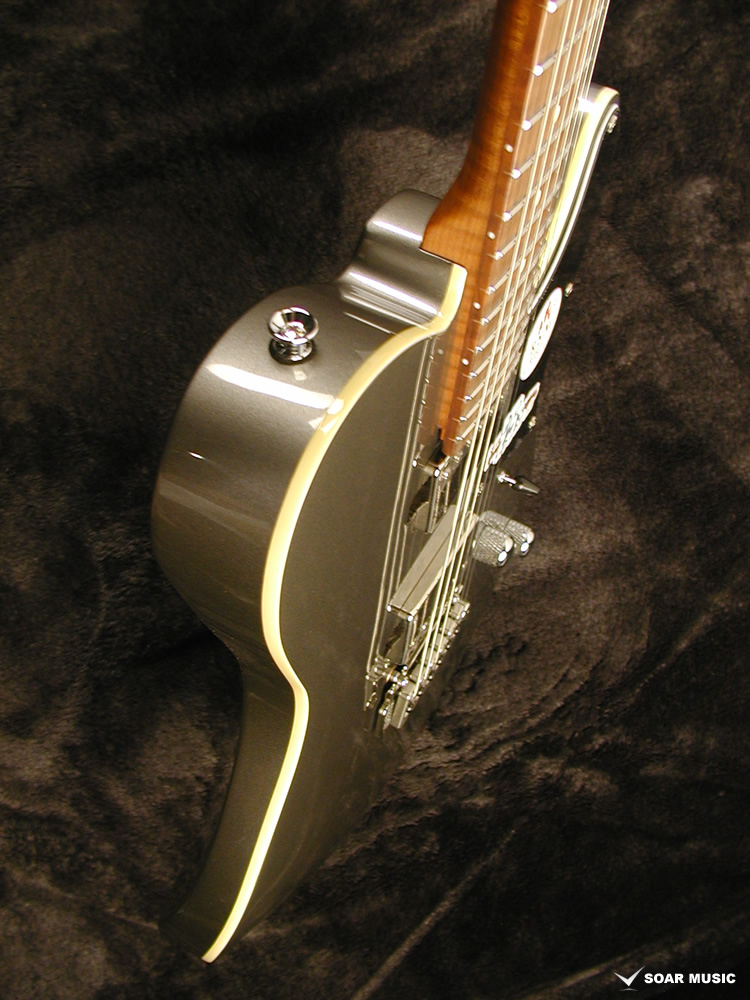 ネックとボディの接合部(ヒール)を削り込むヒールカット加工を施しました。 ジョイントプレートを廃し、ハイフレットを演奏する際に手にフィットし、違和感を感じさせない自然な形状となっています。