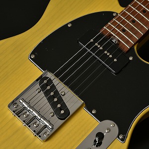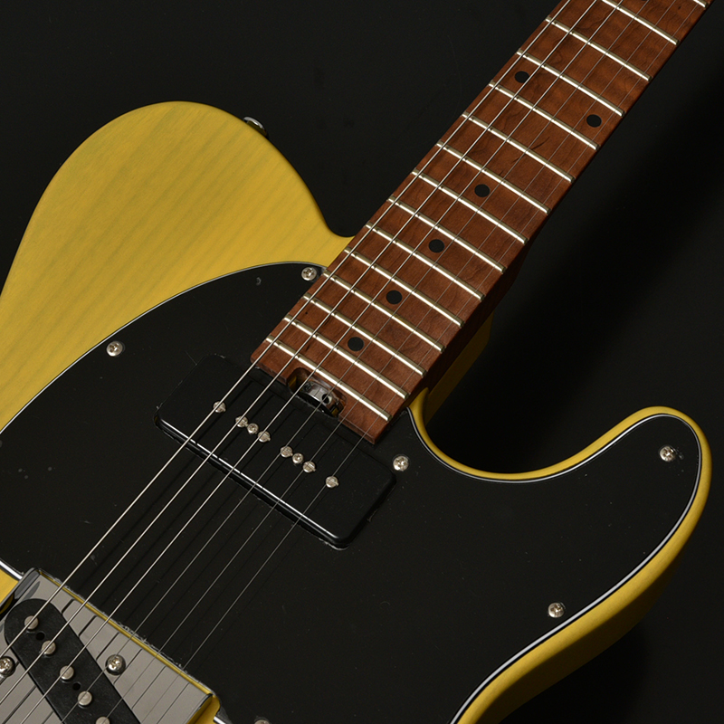 フロントピックアップには通常のシングルコイルより出力の高い、「P-90タイプ」のピックアップを搭載しております。 その為、フロントピックアップでのサウンドが太くなっており、リアピックアップとのサウンドキャラクターが明確に分かれることで、より幅広いジャンルで活躍できるモデルとなっております。
