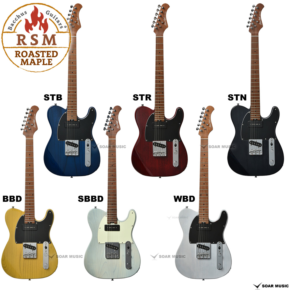 ローステッドメイプルとはメイプルを高温で加熱処理して材の中の水分や油分を揮発させることにより剛性を高めた材。ネックに使用されるとその効果は安定性だけでなくサウンドにも及び、豊かな生鳴りと経年変化したビンテージのようなこなれたトーンを生み出します。高級機種で使われることの多いこの本格派仕様をリーズナブルな価格帯に落とし込んだBacchusの新しい製品ラインナップです。