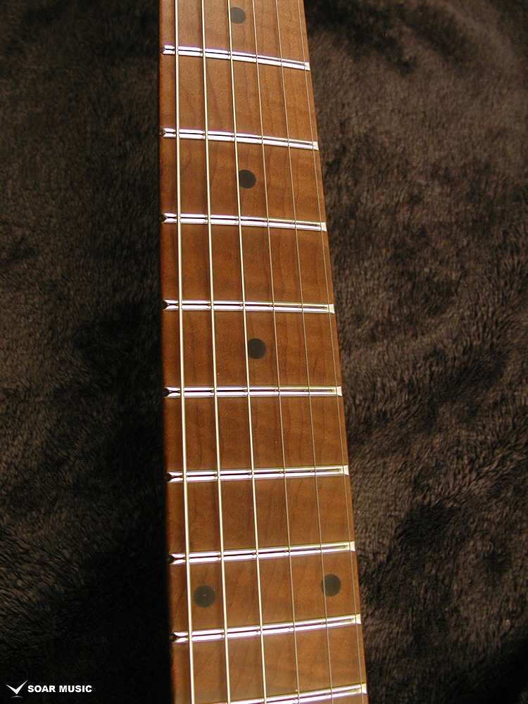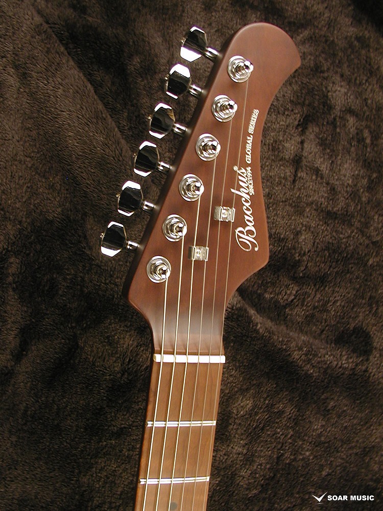 ローステッドメイプルとはメイプルを高温で加熱処理して材の中の水分や油分を揮発させることにより剛性を高めた材。ネックに使用されるとその効果は安定性だけでなくサウンドにも及び、豊かな生鳴りと経年変化したビンテージのようなこなれたトーンを生み出します。高級機種で使われることの多いこの本格派仕様をリーズナブルな価格帯に落とし込んだBacchusの新しい製品ラインナップです。
