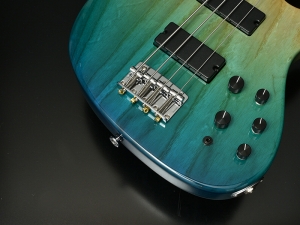 このモデルの一番の魅力はそのボディシェイプ。コンパクトかつハイフレットまで大きくえぐられたカッタウェイは演奏性抜群で、テクニカルなフレージングでもスムーズに運指できます。またプリアンプにはAguilar OBP-2を搭載し、ワイドレンジで扱いやすい2バンドブースト/カットイコライジングが可能です。