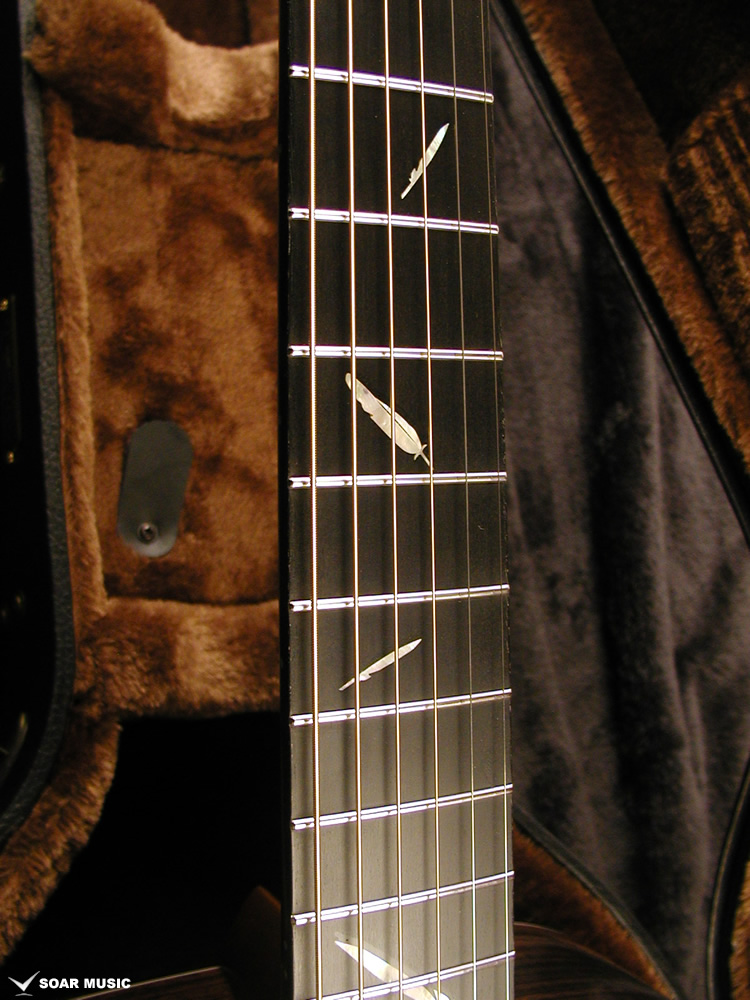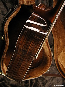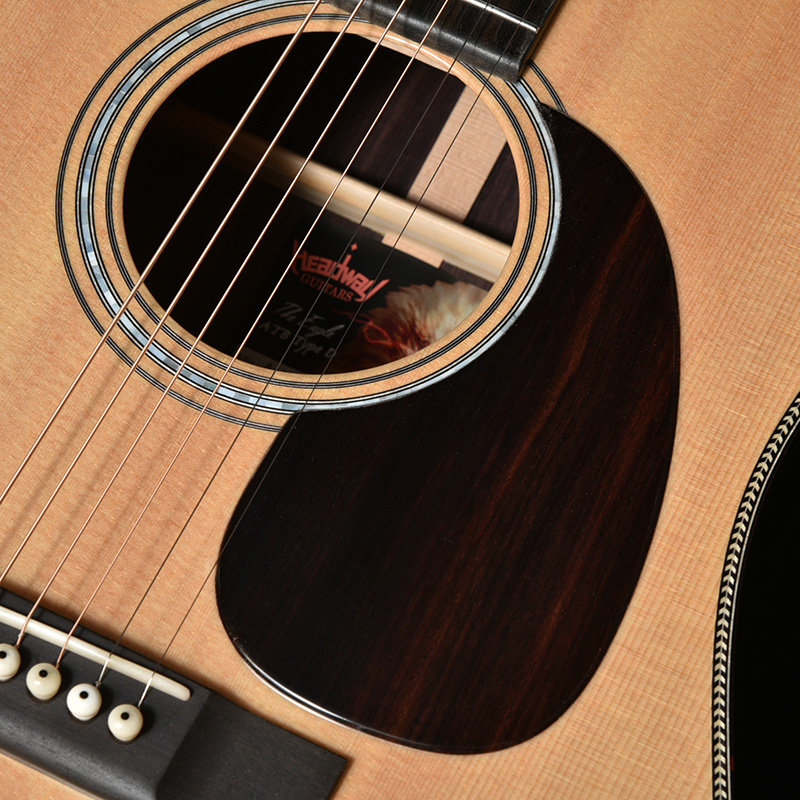 ピックガードにはサイドバック材と同じローズウッドを採用し、高級感のある塗装内への塗り込み仕上げを採用。