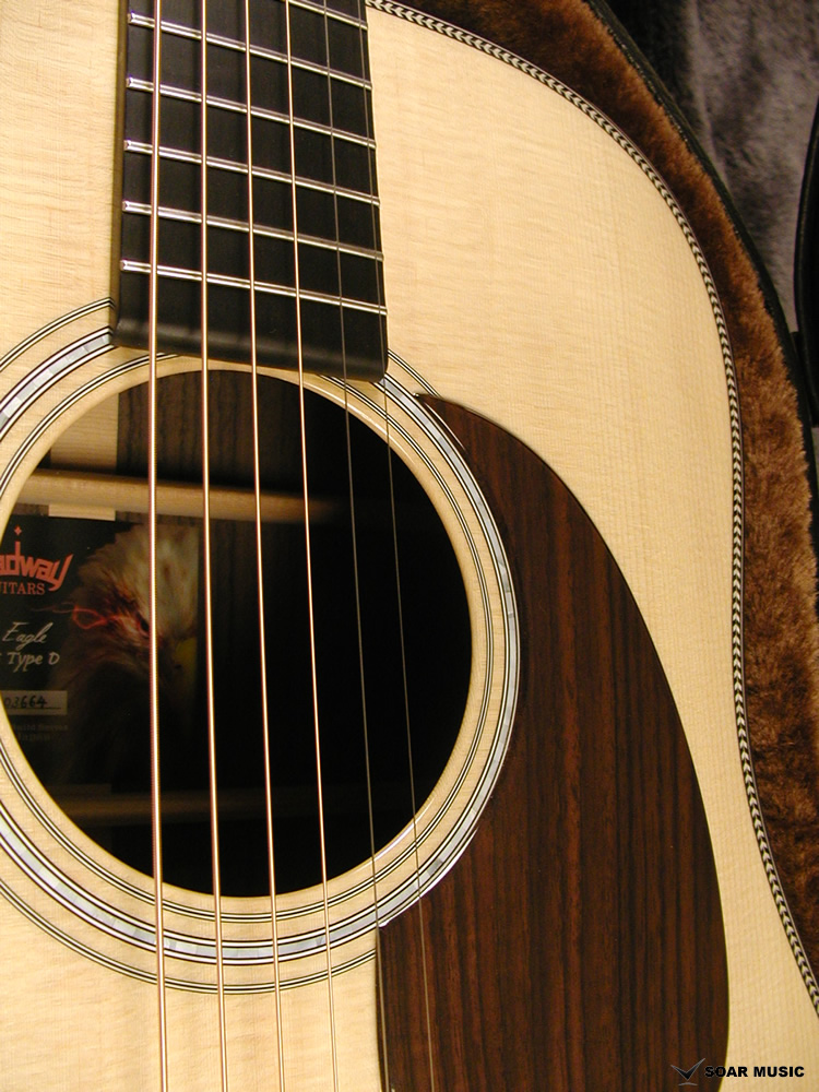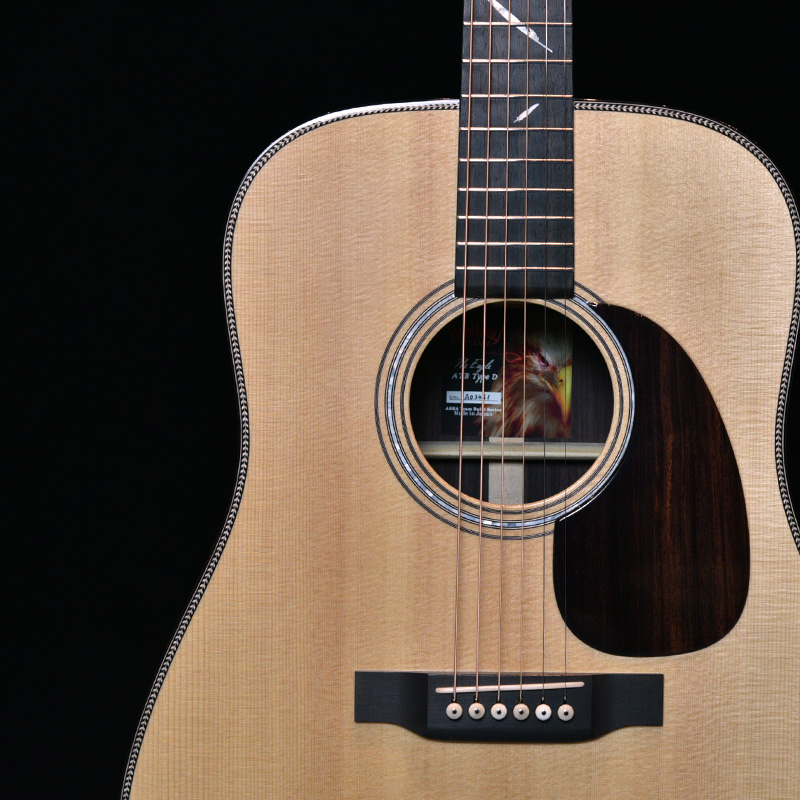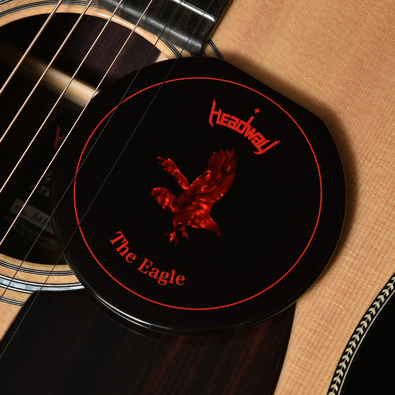 鋭いEagleの眼光が特徴的なサウンドホールラベルもテーマカラーの「赤」を基調とした、これからへ羽ばたく情熱がプレイヤーを刺激します。