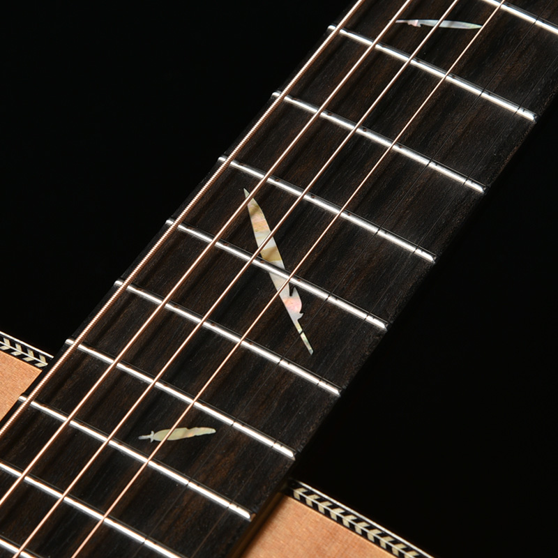 指板にはEagleの羽根(イーグルフェザー)が舞い散る様子を描きました。 イーグルフェザーにはこれから進むべき道を示し、未来を飛躍させる役割を持つと言われており、 Headwayの、そして本機を手にする皆さんの新しいスタートを願ったデザインとなっています。