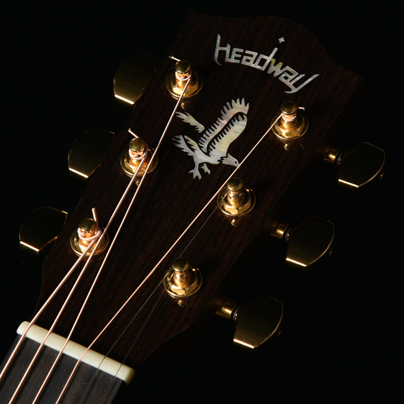 Headway発足時に百瀬が使用していたノーマルブレーシングを基礎とし、カスタムビルダー安井・降幡の両名が現代的なアレンジを取り入れ、再設計に挑んだ『Mid Point Shifted X Bracing』を初採用。 また、通常よりも力木の削りを浅くした『Shallow Scalloped』仕様はこれまでは百瀬のCustomShopモデルでのみ用いられていましたが、今回”The Eagle”にも初めて取り入れました。 1音1音の粒立ちが良いトーンでありながら低音響く箱鳴りを併せ持ち、それら全てを倍音で包んだようなバランスの良いサウンドはこれまでのHeadwayサウンドを踏襲しつつも、Headwayの新たな可能性を感じさせます。
