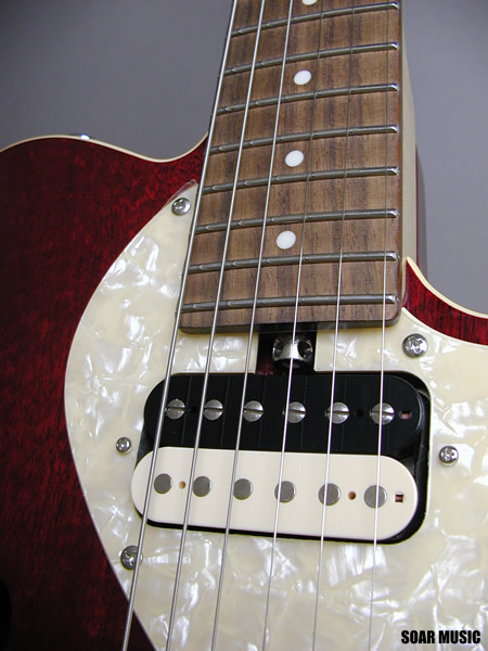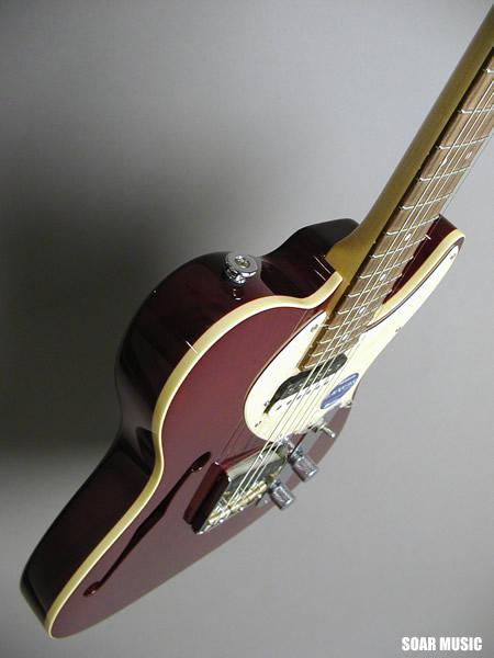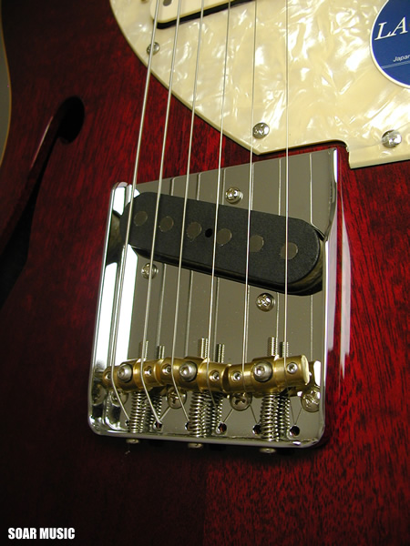 フレーズに素早く反応するレスポンスを持ちながら、独特な豊潤なサスティンが空間的な広がりを与えるセミホロー構造のT-HOLLOW。センターを残して左右をくりぬかれたバック材、そして蓋をするトップ材ともに良質のマホガニーを選択することにより与えられた、より暖かみのある中域と適度にウェットなヴォイシングが本機の最大の特徴といえるでしょう。 また、ブリッジポジションにシングルコイル、ネックポジションにハムバッカータイプのピックアップを設定することによって、ロカビリー調のフレーズから、スムースなドライブトーンまで様々な変化をみせてくれます。