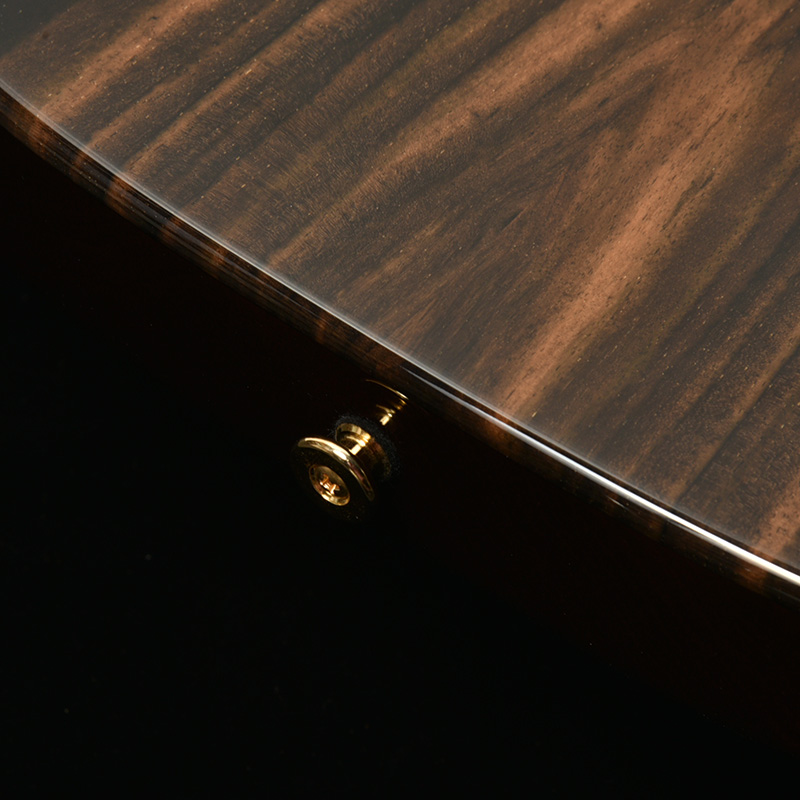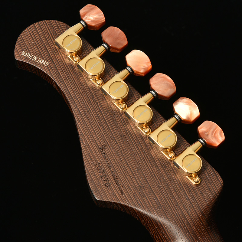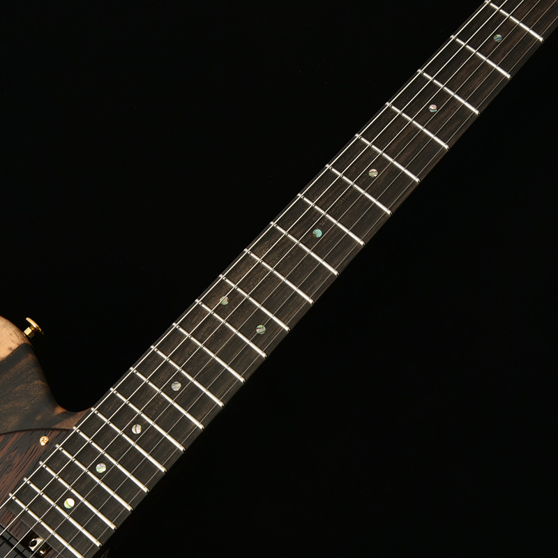 コリーナウッドはマホガニーに近く、バランスの取れた重量・硬質さで人気の高い材の一つですが、近年その流通量は減少傾向に。もはや説明不要とも言える、ハイミッドにかけて抜けの良いサウンドを響かせます。本モデルはアフリカンコリーナの1P材をボディに採用し、クロガキの色と調和するようナチュラルカラーでフィニッシュされています。