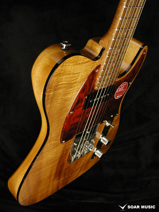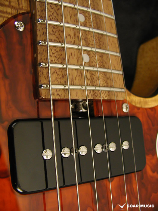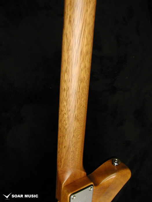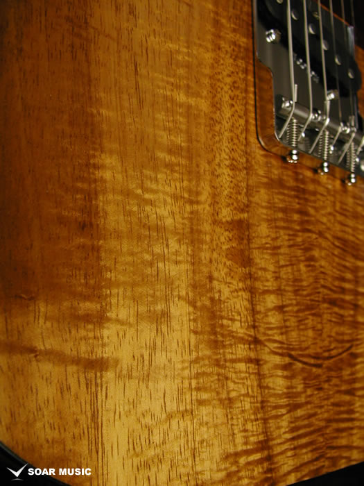 ボディトップにはカーリー杢の入ったコア材を使用し、ボディバックにはネックと同様、アカシア材を配する事で、十分なアタックレスポンス、抜けの良いサウンドに仕上がっています。