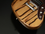テックウッド指板モデルは、アッシュの木目を活かすオイルフィニッシュモデルで仕上げました。メイプル指板モデルは、木目が際立つバーナー処理を施したアッシュ材を採用。ナチュラルカラーとブラックバーストカラーの2色をラインナップしています。 |