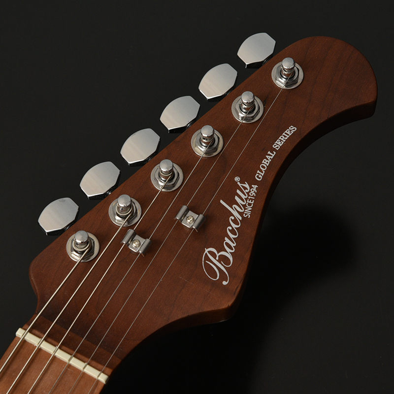 ローステッドメイプルとはメイプルを高温で加熱処理して材の中の水分や油分を揮発させることにより剛性を高めた材。ネックに使用されるとその効果は安定性だけでなくサウンドにも及び、豊かな生鳴りと経年変化したビンテージのようなこなれたトーンを生み出します。高級機種で使われることの多いこの本格派仕様をリーズナブルな価格帯に落とし込んだBacchusの新しい製品ラインナップです。