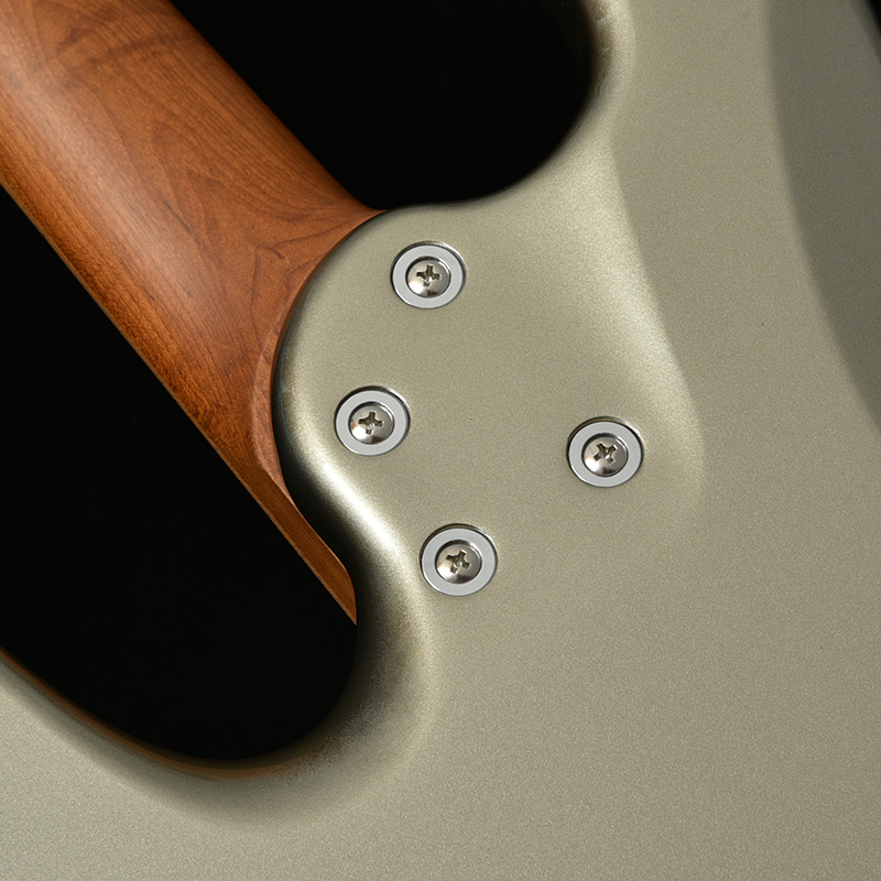 エントリークラスのモデルには珍しいヒールレスカットを採用することで、ハイフレットの演奏時もスムーズなフィンガリングを可能に。ブッシュボルト部分にわずかに施したコンター加工がプレイアビリティを高めます。
