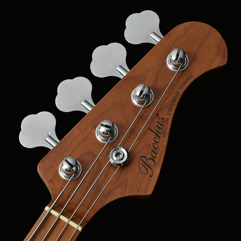ボディはBacchusブランド最上位機種である「WOODLINE」を踏襲。一般的なJBタイプのエレキベースよりもわずかにスリムに設計されており、抱えやすさと弾き心地の良さを実現します。