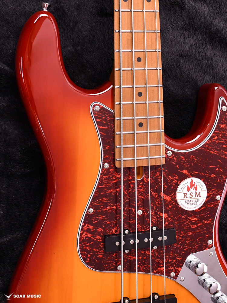 ボディはBacchusブランド最上位機種である「WOODLINE」を踏襲。一般的なJBタイプのエレキベースよりもわずかにスリムに設計されており、抱えやすさと弾き心地の良さを実現します。