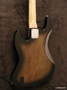トップにはバールポプラ、バックにはマホガニーを使用。ポジションマークにはアバロンを採用し、高級感のある外観へと仕上がりました。ネックはメイプルとローズウッドの5Pを採用し、引き締まったサウンドへと仕上げられています。バール杢を生かすクリアピックガードを採用しています。