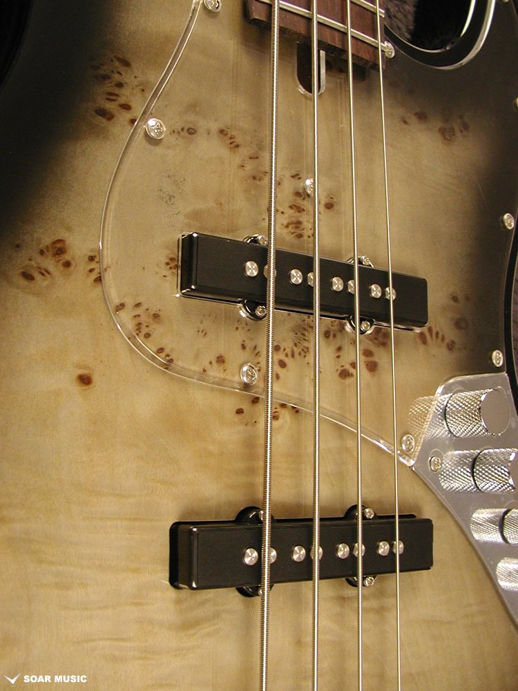 ボディトップにはエキゾチックなバールの杢目をお楽しみいただけるバールポプラ材を使用。