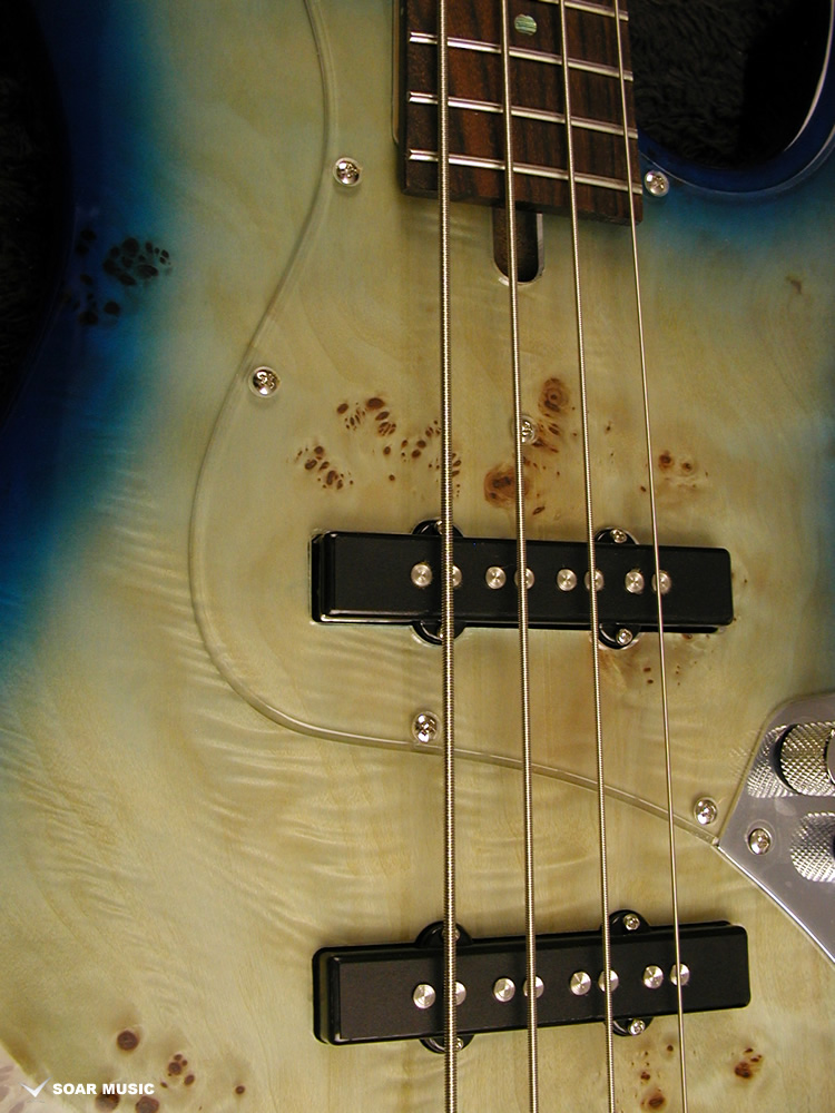 ボディトップにはエキゾチックなバールの杢目をお楽しみいただけるバールポプラ材を使用。