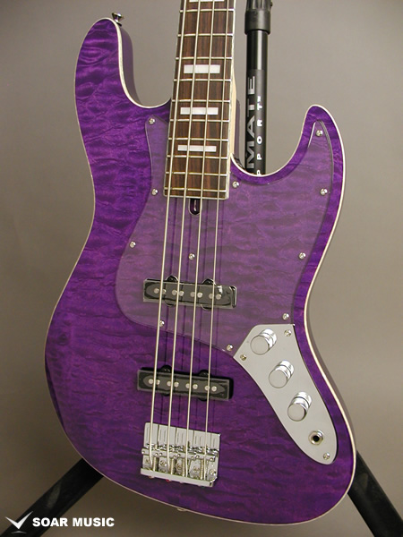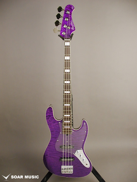 | アルダー材を使用したボディのトップにエキゾチックな木目の映えるキルテッドメイプルを張り合わせた存在感と高級感のあるルックスに仕上がっています。2ピックアップ、2ボリューム、1トーンの扱い易いジャズベース仕様はそのままに、ターボスイッチを搭載しており、より幅広く力強いサウンドメイクが可能です。ピックガードにはボディ全体の木目を損なわないクリアピックガードが搭載されており、サウンド、ルックスの両方に拘ったベースに仕上がっています。また、木目を活かした豊富なシースルーカラーのバリエーションより、お好みの1本をお選びいただけます。