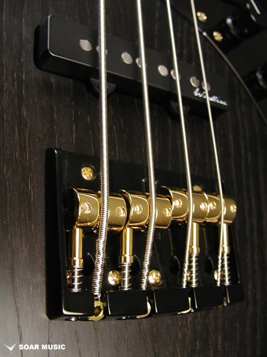 ブリッジにはブラックカラーのベースプレートとゴールドカラーのサドルを組合わせた同社製の404SJ-4Bを搭載。