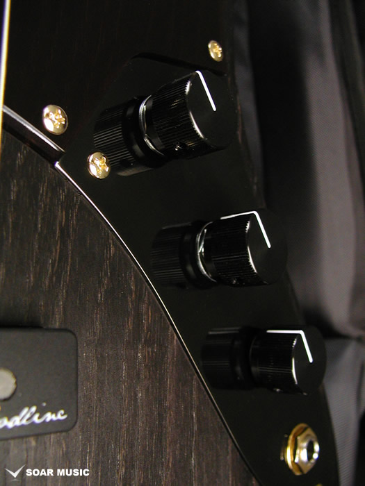 現行モデルのWOODLINE 417モデルの基本仕様はそのままに、ブラック&ゴールドパッケージのハードウェア、スモークブラウンカラーのピックガードにより、精悍で重厚感のある雰囲気に仕上げられています。