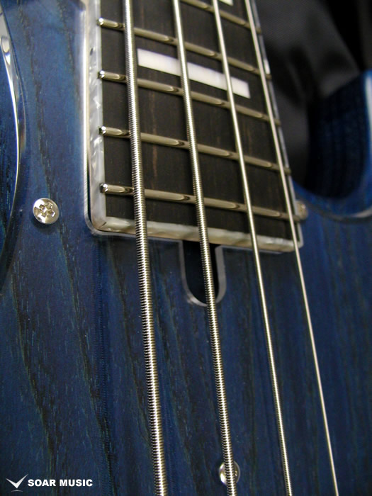 ペグには長きに渡って高い精度と安定性、信頼性の実績を誇る GOTOH 社製の GB11WC を、ブリッジには同社製の 404SJ を搭載。スチールサドルとベースプレートには音色に定評のあるハードジンク材を使用しており、各音域でクリアな響きとサスティン豊かなサウンドを作ります。また、ブリッジは通常のジャズベースブリッジと同じトップローダー(表通し)での弦の張り方だけではなく、ボディ側の加工も含め、スルーボディ(裏通し)にも対応。スルーボディ(裏通し)ではアタック音が強調され、よりボディ材のサウンド特性を強調させた鳴りをお楽しみいただけます。演奏スタイルに合わせて弦ごとに張り方を変えてみるなど、個性を重視した柔軟なセッティングも可能にしています。