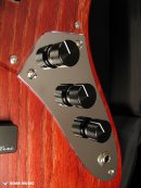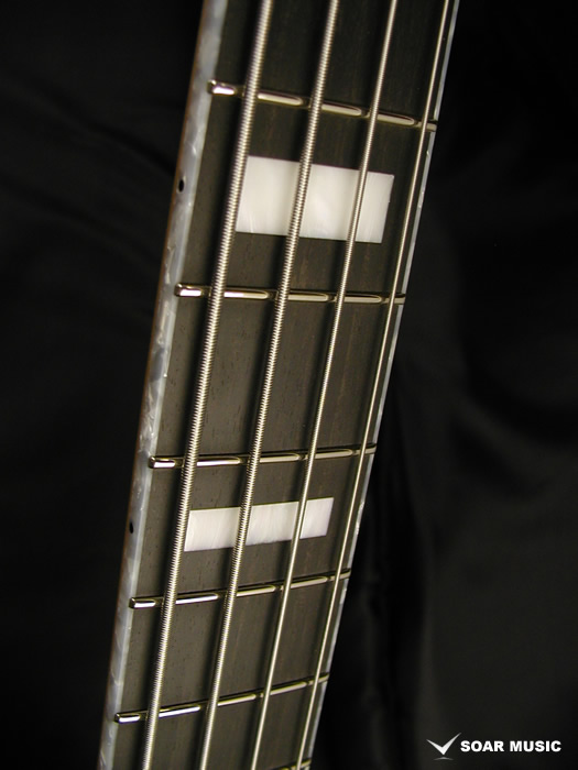 一般的にフロント/リアにシングルコイル PU (ピックアップ)を2基搭載したベースはフロント/リアがパラレル(並列)で配線されています。WOODLINE に搭載されているターボスイッチはトーンノブを引っ張りONにする事で、フロント/リアを(直列)回路に切り替え、フロント/リアピックアップを連動させた擬似的なハムバッキングサウンドが得られます。