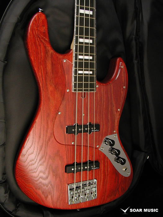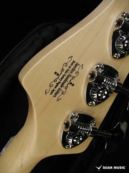 ペグには長きに渡って高い精度と安定性、信頼性の実績を誇る GOTOH 社製の GB11WC を、ブリッジには同社製の 404SJ を搭載。スチールサドルとベースプレートには音色に定評のあるハードジンク材を使用しており、各音域でクリアな響きとサスティン豊かなサウンドを作ります。また、ブリッジは通常のジャズベースブリッジと同じトップローダー(表通し)での弦の張り方だけではなく、ボディ側の加工も含め、スルーボディ(裏通し)にも対応。スルーボディ(裏通し)ではアタック音が強調され、よりボディ材のサウンド特性を強調させた鳴りをお楽しみいただけます。演奏スタイルに合わせて弦ごとに張り方を変えてみるなど、個性を重視した柔軟なセッティングも可能にしています。