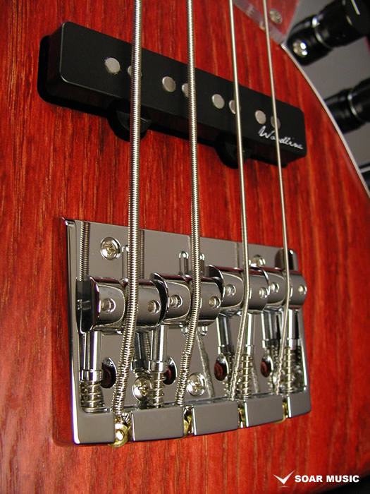 今回の WOODLINE シリーズはピックアップがリニューアルされており、ピックアップ上を通る各弦とポールピースの位置の最適化を行っています。また、前モデルと比べ、リアピックアップの位置を約1センチブリッジ側に配する事で、タイトで抜けが良く芯のあるサウンドに仕上がっています。特にターボスイッチ ON 時は旧モデルと比べ、クリアでより音抜けが増した印象があります。