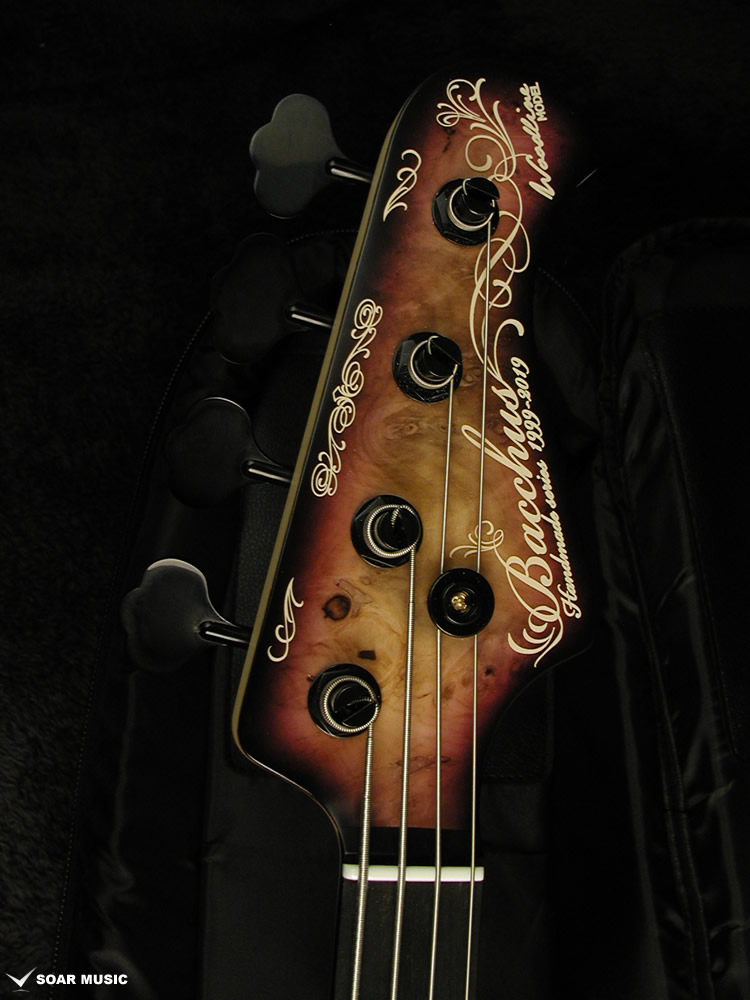 Bacchus Handmade series20周年を記念する特別モデル。指板とヘッドトップに描き下ろしのオリジナルデザインが入ります。本機はバックアイバールを赤系の特別なバーストカラーで仕上げました。中央からクリアナチュラル→赤→ブラックへの絶妙なグラデーションをお楽しみください。