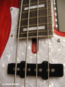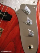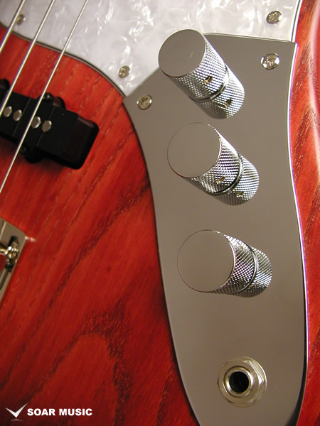 通常の2ピックアップタイプのベースはフロントピックアップ、リアのピックアップをパラレル(並列)で配線してますが、トーンノブを引っ張ることにより、フロント/リアピックアップを連動させたシリーズ(直列)回路に切り替わります。