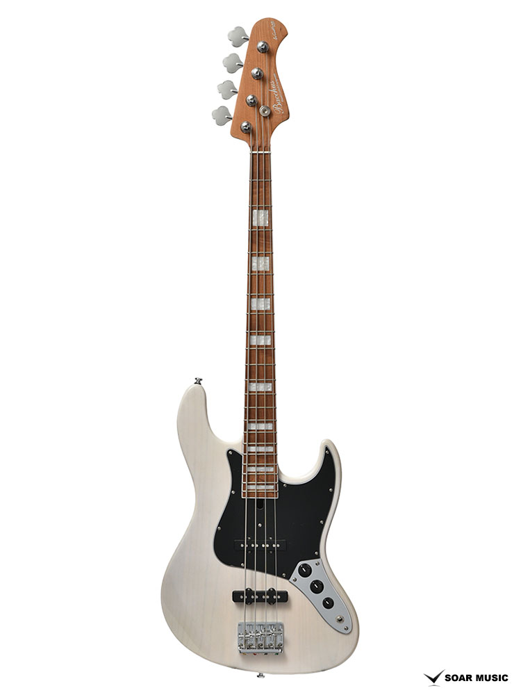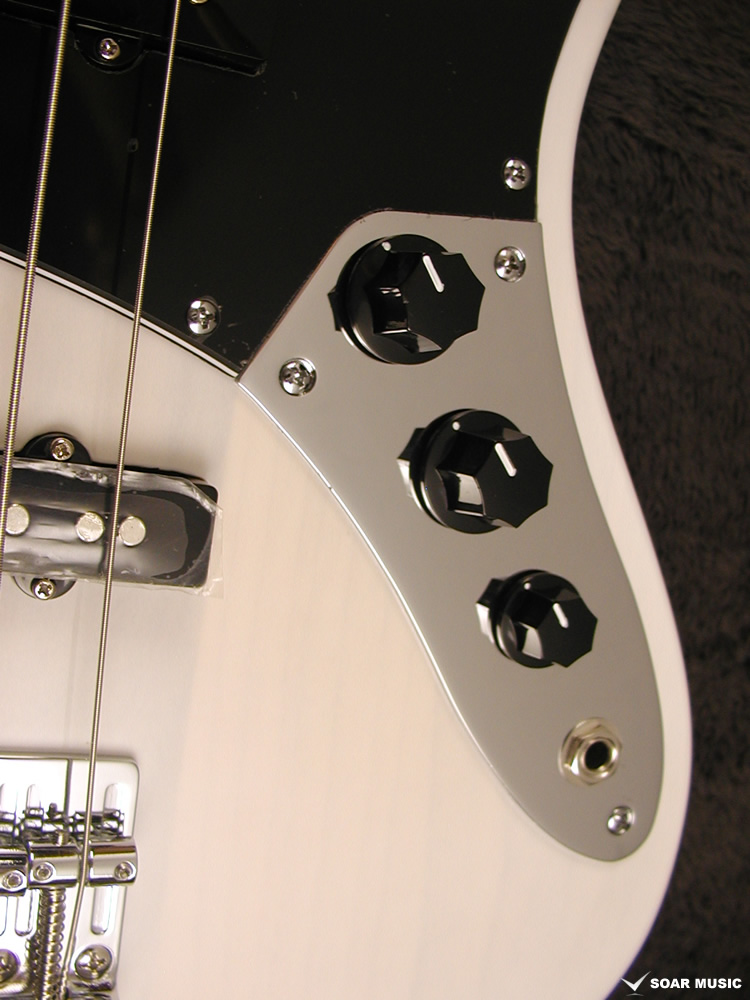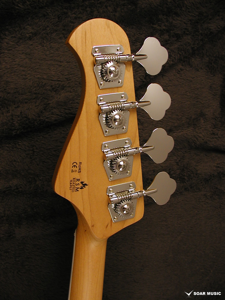 コントロールは一般的なJBスタイルの2Vol、 1Tone構成でTurbo Switchも搭載。 トーンノブをプルアップすると二つのピックアップをシリーズ接続し、ハムバッキングPUの様な太いサウンドを作ることが出来ます。(ターボスイッチをONしている間のボリュームコントロールはフロントボリュームノブで行い、リアボリュームノブはバイパスされます。)
