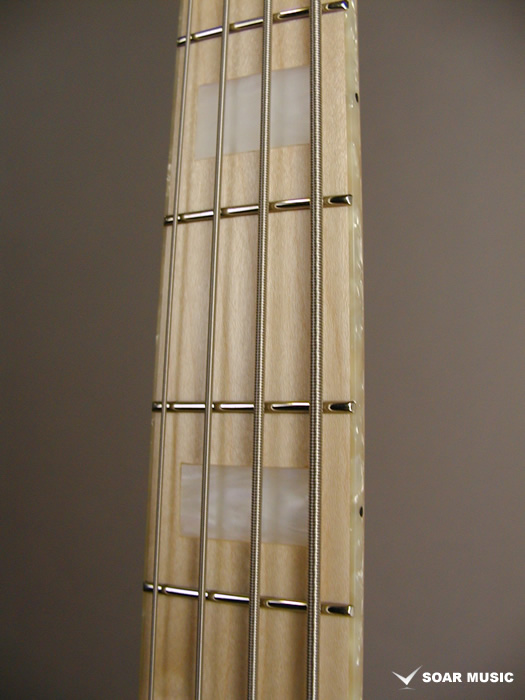 スリムで抱えやすいボディシェイプは指板のブロックポジションやパールバインディングと相まって精悍な印象を与えます。