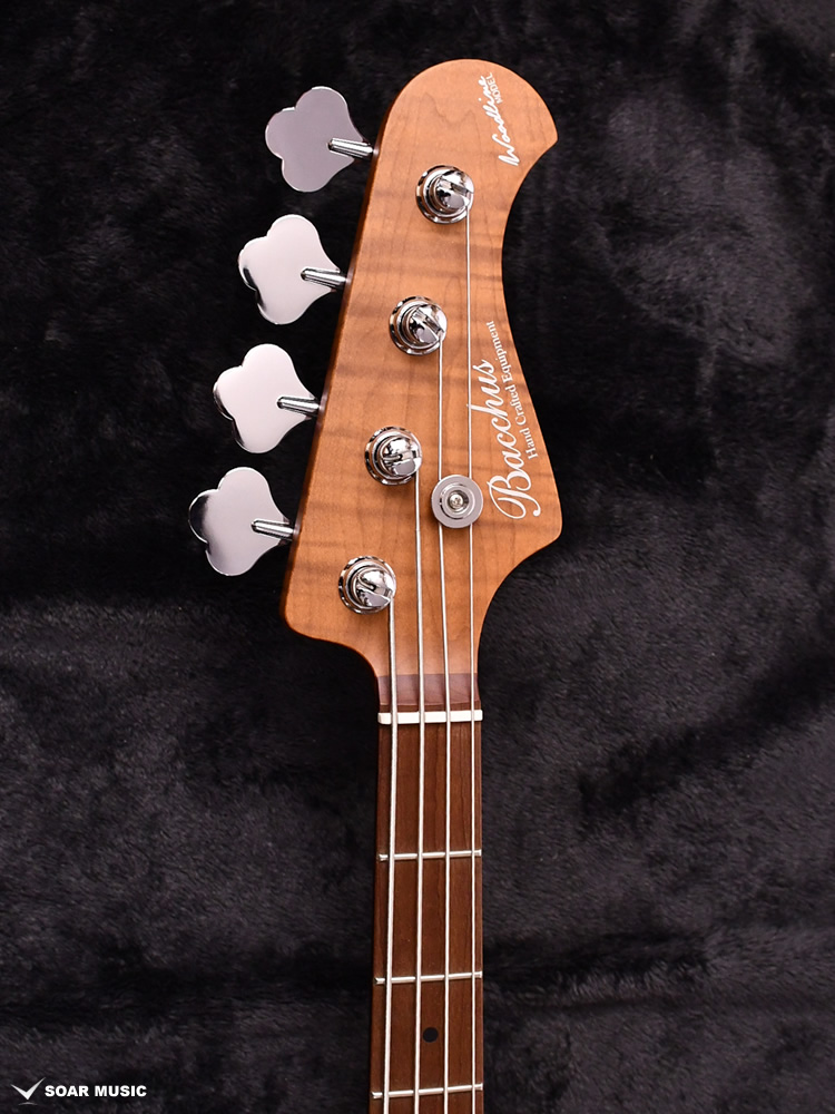 ローステッドメイプルとはメイプルを高温で加熱処理して材の中の水分や油分を揮発させることにより剛性を高めた材。ネックに使用されるとその効果は安定性だけでなくサウンドにも及び、豊かな生鳴りと経年変化したビンテージのようなこなれたトーンを生み出します。高級機種で使われることの多いこの本格派仕様をリーズナブルな価格帯に落とし込んだBacchusの新しい製品ラインナップです。