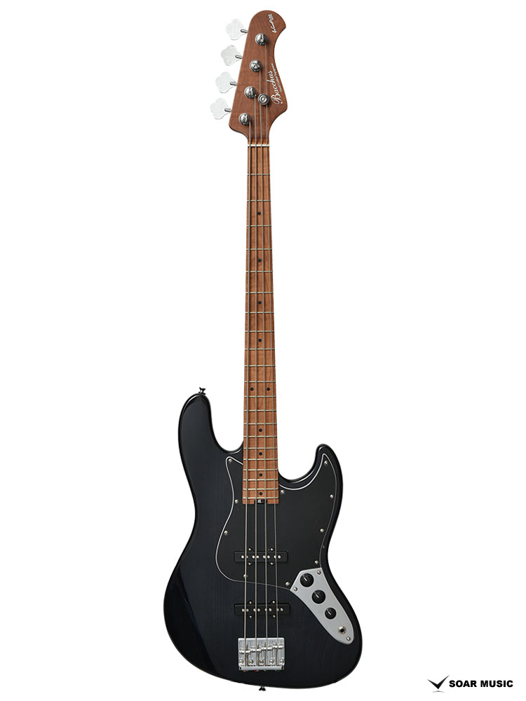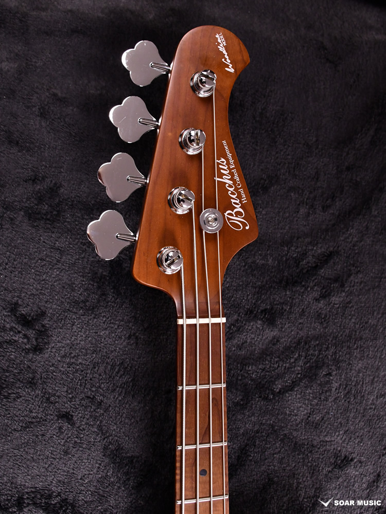ローステッドメイプルとはメイプルを高温で加熱処理して材の中の水分や油分を揮発させることにより剛性を高めた材。ネックに使用されるとその効果は安定性だけでなくサウンドにも及び、豊かな生鳴りと経年変化したビンテージのようなこなれたトーンを生み出します。高級機種で使われることの多いこの本格派仕様をリーズナブルな価格帯に落とし込んだBacchusの新しい製品ラインナップです。
