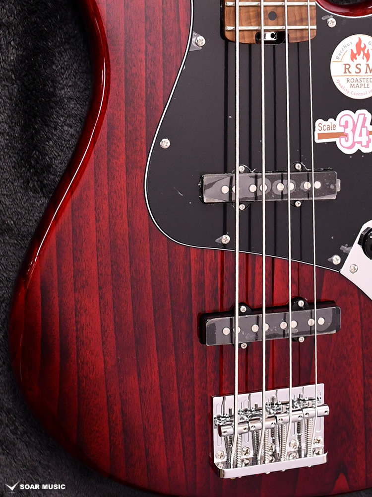 ローステッドメイプルとはメイプルを高温で加熱処理して材の中の水分や油分を揮発させることにより剛性を高めた材。ネックに使用されるとその効果は安定性だけでなくサウンドにも及び、豊かな生鳴りと経年変化したビンテージのようなこなれたトーンを生み出します。高級機種で使われることの多いこの本格派仕様をリーズナブルな価格帯に落とし込んだBacchusの新しい製品ラインナップです。