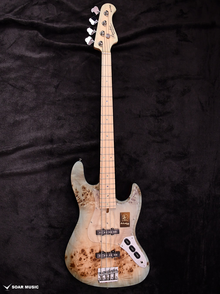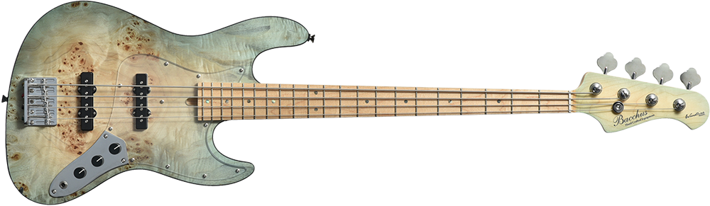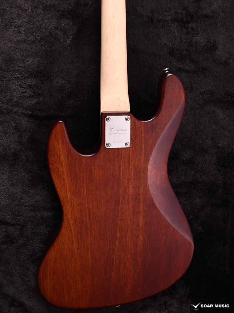 本モデルは過去にBacchus Handmade Seriesから限定モデルで登場した、KRB(渓流ブルー)とSYP(ソメイヨシノピンク)のカラーリングを踏襲した淡い色合いで仕上げています。薄い色のバーストは技術を要しますが、国産モデルを製造している飛鳥工場の職人の熟練した塗装技術を再現。メイプルの指板を含めてベース全体の外観を柔らかな雰囲気でまとめました。