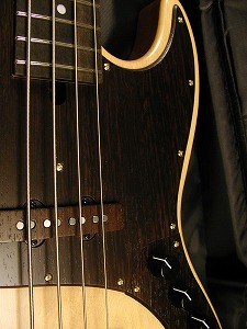コントロールは一般的なJBスタイルの2Vol、1Tone(Turbo Switch)。トーンノブをプルアップすると二つのピックアップをシリーズ接続し、ハムバッキングタイプPUの様な太いサウンドを作ることが出来ます。(ターボスイッチをONしている間のボリュームコントロールはフロントボリュームノブで行い、リアボリュームノブはバイパスされます。)