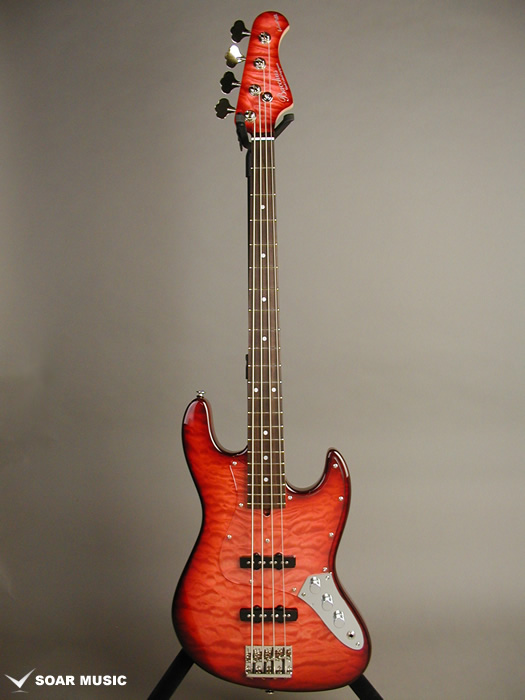 ボディトップに美しい木目のキルテッドメイプル、ボディバックには通常トップ材として扱われることが多いマンゴーウッド材をボディバックに贅沢し使用しており、よりマンゴーウッドの音質を引き出したモデルです。また、ターボスイッチを搭載する事で、材の鳴りを活かしたナチュラルなパッシブトーンから、パンチのある図太いトーンまでサウンドメイクの幅を広げています。また、キルテッドメイプルの美しい木目が映えるシースルー系のバーストフィニッシュはスタイリッシュなボディシェイプと相まって堂々としたルックスに仕上がっています。