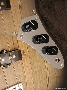 WOODLINEモデルではおなじみの「ターボスイッチ」を本機でも搭載。トーンノブをプルアップすることで、ターボスイッチがオンとなります。2つのシングルピックアップをシリーズ(直列)接続し、太くハムバッキング・ピックアップのようなサウンドを作り出します。(※ターボスイッチがオンの時音量はフロントVolノブで調整します。この時リアVolノブはバイパスされます)