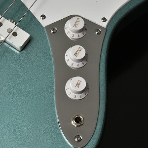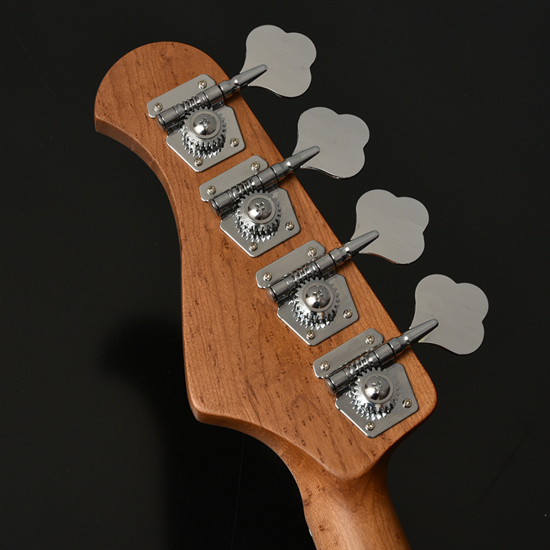 コントロールは一般的なJBスタイルの2Vol、 1Tone構成でTurbo Switchも搭載。 トーンノブをプルアップすると二つのピックアップをシリーズ接続し、ハムバッキングPUの様な太いサウンドを作ることが出来ます。(ターボスイッチをONしている間のボリュームコントロールはフロントボリュームノブで行い、リアボリュームノブはバイパスされます。)