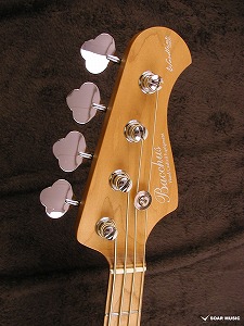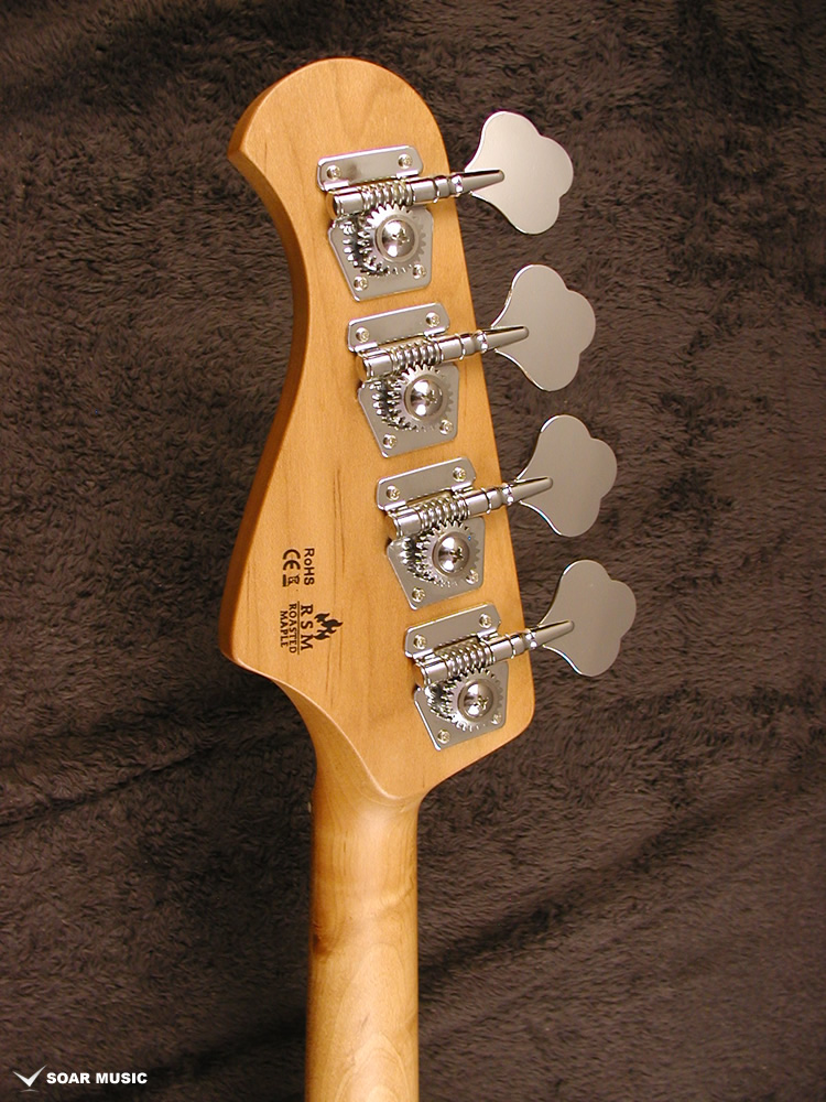 コントロールは一般的なJBスタイルの2Vol、 1Tone構成でTurbo Switchも搭載。 トーンノブをプルアップすると二つのピックアップをシリーズ接続し、ハムバッキングPUの様な太いサウンドを作ることが出来ます。(ターボスイッチをONしている間のボリュームコントロールはフロントボリュームノブで行い、リアボリュームノブはバイパスされます。)