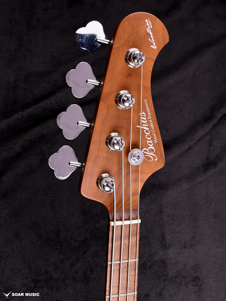 ローステッドメイプルとはメイプルを高温で加熱処理して材の中の水分や油分を揮発させることにより剛性を高めた材。ネックに使用されるとその効果は安定性だけでなくサウンドにも及び、豊かな生鳴りと経年変化したビンテージのようなこなれたトーンを生み出します。高級機種で使われることの多いこの本格派仕様をリーズナブルな価格帯に落とし込んだBacchusの新しい製品ラインナップです。