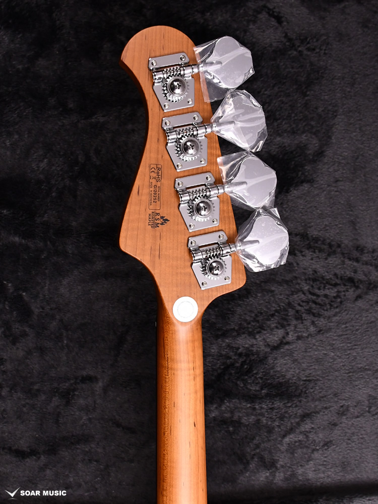 ローステッドメイプルとはメイプルを高温で加熱処理して材の中の水分や油分を揮発させることにより剛性を高めた材。ネックに使用されるとその効果は安定性だけでなくサウンドにも及び、豊かな生鳴りと経年変化したビンテージのようなこなれたトーンを生み出します。高級機種で使われることの多いこの本格派仕様をリーズナブルな価格帯に落とし込んだBacchusの新しい製品ラインナップです。