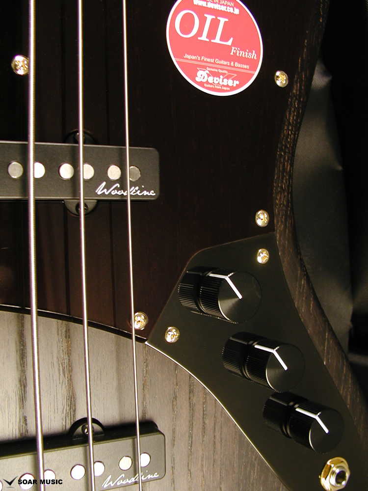 また、ブリッジは通常のジャズベースブリッジと同じトップローダー(表通し)での弦の張り方だけではなく、ボディ側の加工も含め、スルーボディ(裏通し)にも対応。