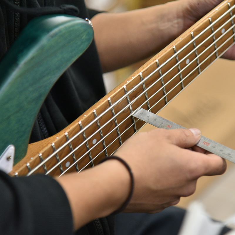 上記の作業に加えて、弾きやすさに直結する弦高調整や指板の最終仕上げなどもチューンナップの項目として徹底的に行います。H.J.Freaksの求める演奏性を実現するため、1本1本のベースの状態を見極めながら適切なセットアップを施していきます。