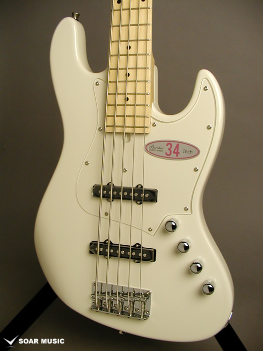 最もスタンダードなベースに使用されている34インチスケール。 バランスに優れ、弾いた時のテンション感、音の伸び、いずれの面でも最も馴染み深く、また世の中のエレキベースのほとんどがこの34インチスケールを採用してします。 これ以外の2つのスケールを試した上でこのスケールを弾くと、改めてそのバランス感に納得させられます。