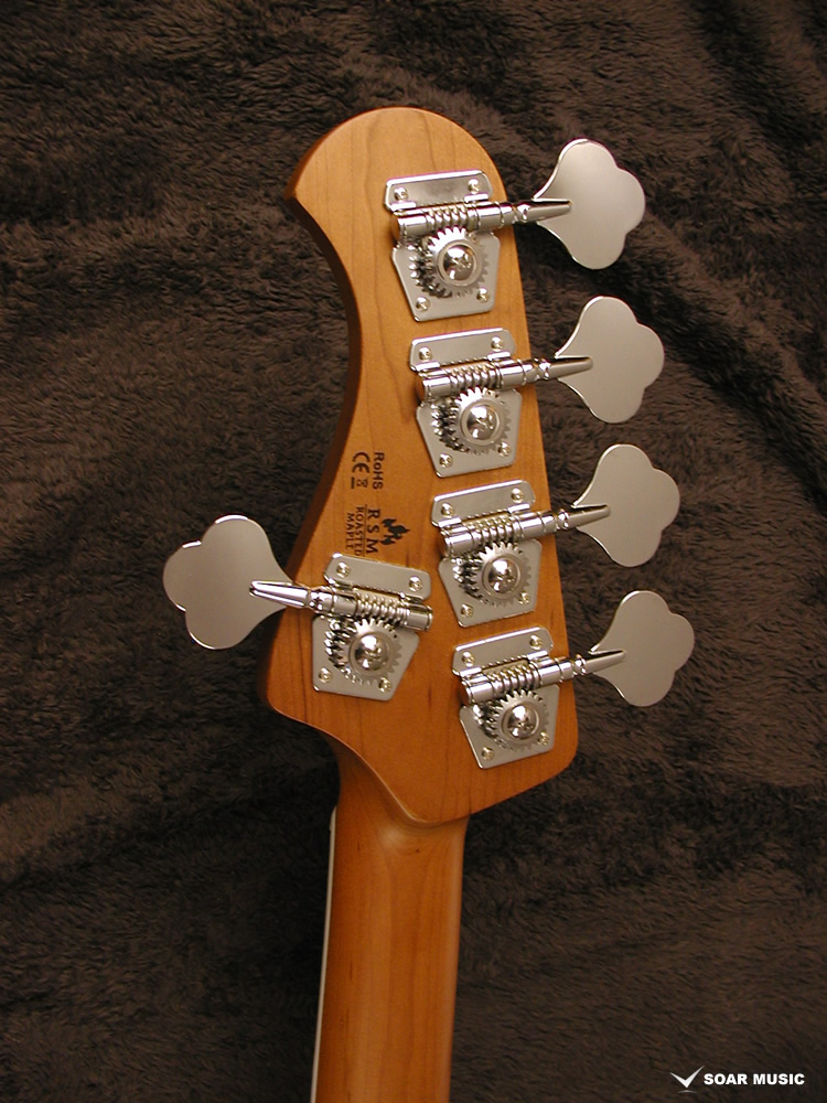 本モデルはアクティブ仕様で、Volume、Balancer、Treble、Bassのレイアウトとなっており、幅広い音作りが出来ます。 使い方としては、Balancerでフロントピックアップとリアピックアップの出力のバランスを決め、Treble、Bassの2バンドEQで音の太さや抜け感といった音のバランスを変え、Volumeで最終的な音の大きさをセッティングし、バンドアンサンブルの中でのベースの出音を手元で設定します。 また、ボリュームノブとバランサーの間にプリアンプのON/OFFスイッチも搭載されているため、足元などで音作りがしたい方でも問題なくご使用いただけます。
