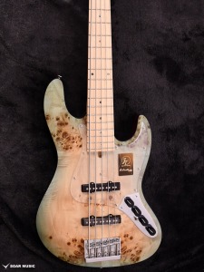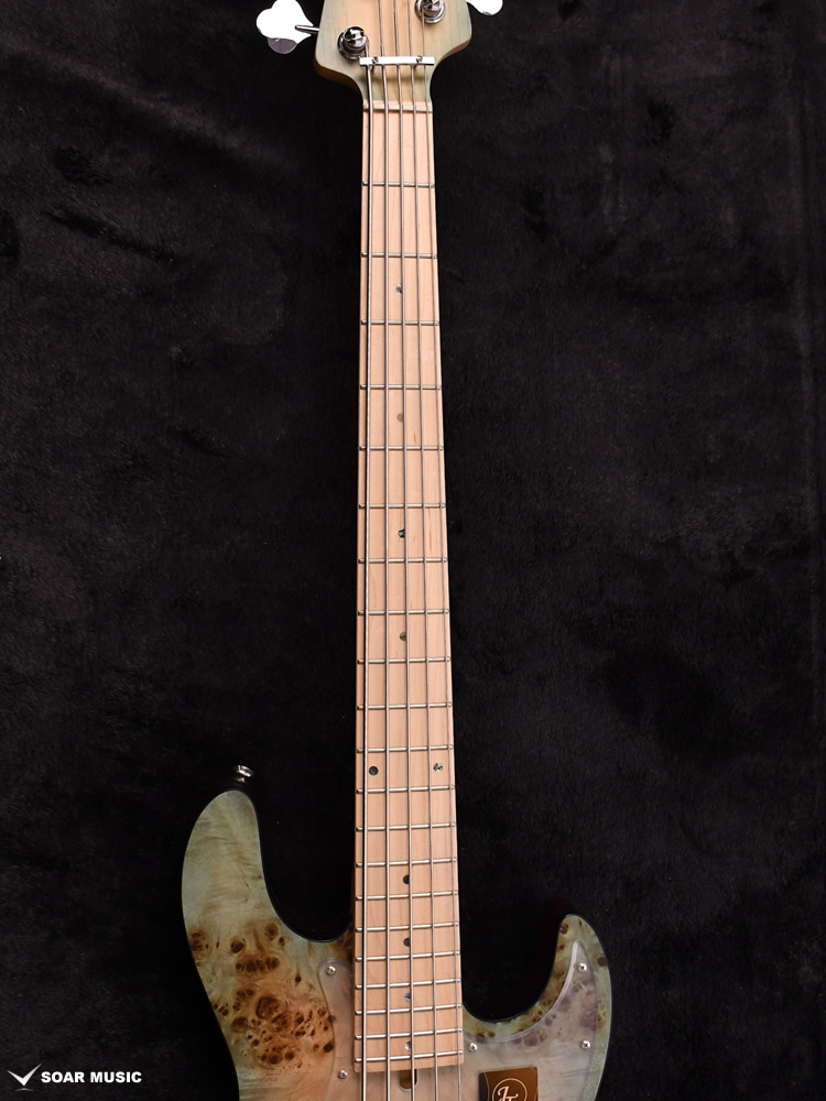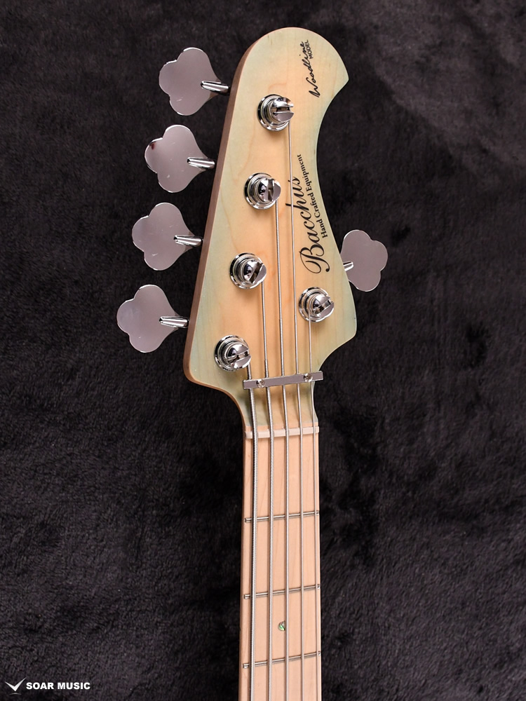 本モデルは過去にBacchus Handmade Seriesから限定モデルで登場した、KRB(渓流ブルー)とSYP(ソメイヨシノピンク)のカラーリングを踏襲した淡い色合いで仕上げています。薄い色のバーストは技術を要しますが、国産モデルを製造している飛鳥工場の職人の熟練した塗装技術を再現。メイプルの指板を含めてベース全体の外観を柔らかな雰囲気でまとめました。